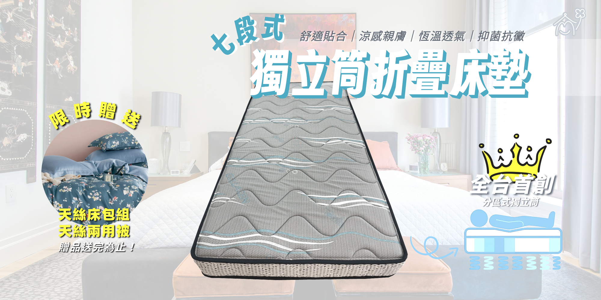 試躺時間不受限,現場也備有枕頭、床包、涼被各樣寢具,
